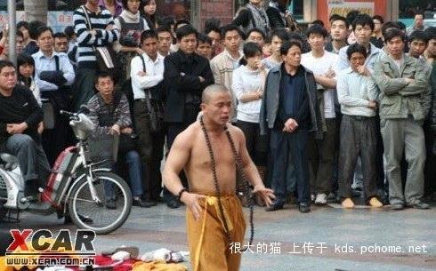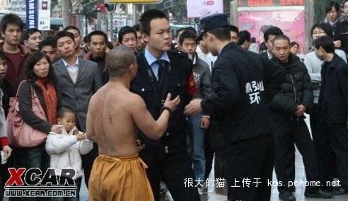 一個(gè)160左右的少林寺弟子,在深圳華強(qiáng)北賣藝,用酒瓶敲頭,林沖用的長槍插自己,開始有4個(gè)城管叫他走,他沒有理會(huì),4個(gè)城管也在旁邊看,邊打電話,隨后和尚18般武藝都使出來了,后來來了一車城管,想直接去砸和尚的東西,開始4個(gè)城管就對(duì)他們說,他功夫厲害,30多個(gè)城管拿棒子準(zhǔn)備打架的狀態(tài),城管說你走不走,和尚說這里是中國人的地方我就不走,有本事抓我槍斃,要打架,我不怕你人多,隨后大叫一聲,用手直接把磚頭敲碎了,城管老大看見以后就說,你要講道理,出家人不要喊打打殺殺,現(xiàn)場(chǎng)的人全部笑了 !——網(wǎng)友言
