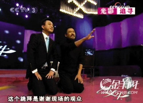更雷人的一幕出現(xiàn)了———發(fā)哥突然拉著朱軍,面對(duì)現(xiàn)場(chǎng)觀眾跪了下來,說這是為了讓他感受《孔子》是如何復(fù)原2000年前的真實(shí)生活的。朱軍一臉惶恐,沒想到發(fā)哥又繼續(xù)拉著他,以額貼地,實(shí)實(shí)在在地給觀眾叩了一個(gè)頭,說要感謝觀眾。緊接著,發(fā)哥向著朱軍跪了下來,給他叩了一個(gè)頭。正當(dāng)朱軍驚恐莫名,發(fā)哥學(xué)著朱軍慣用的深情語調(diào),極其“誠懇”地表示,因?yàn)樗矚g看《藝術(shù)人生》,朱軍跟他父親的故事令他非常感動(dòng)。這下,朱軍不得不也以磕頭“還禮”。