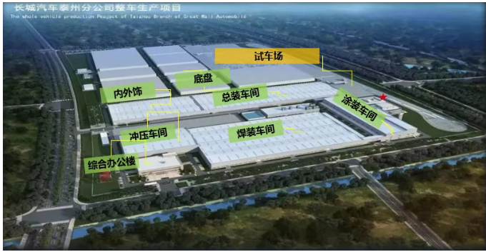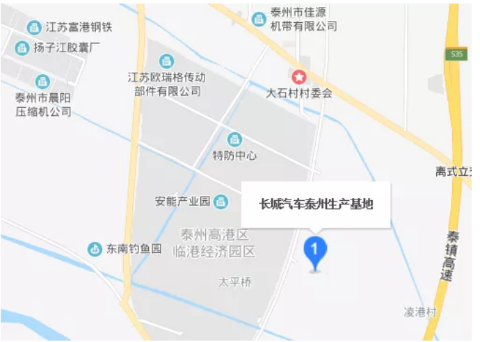 2019年2月20日,長城汽車確定落戶泰州;主要建設(shè)汽車整車、內(nèi)外飾及底盤制造項目,項目占地1173畝、規(guī)劃員工3000人,先期投資80億元,預計于2020年12月正式投產(chǎn)。泰州生產(chǎn)基地總規(guī)劃約10平方公里,通過5-10年的發(fā)展,構(gòu)建完整的汽車產(chǎn)業(yè)鏈體系,建設(shè)創(chuàng)新驅(qū)動、科技人文、宜居宜業(yè)、產(chǎn)城交融的國際化園區(qū),圍繞“創(chuàng)新、協(xié)調(diào)、綠色、開放、共享”發(fā)展理念,以投資建設(shè)汽車整車制造為核心,汽車關(guān)鍵零部件為配套、以及金融(包括汽車金融)、汽車保險、共享出行、汽車產(chǎn)業(yè)創(chuàng)業(yè)基地等為延伸的汽車科技產(chǎn)業(yè)園。泰州廠區(qū)主要包括:沖壓車間、焊裝車間、涂裝車間、總裝車間以及諾博汽車、精誠工科等四家零部件公司。泰州基地主要生產(chǎn)A01、ES11兩款車型,整體規(guī)劃年產(chǎn)能為20萬輛。長城汽車泰州分公司位置: